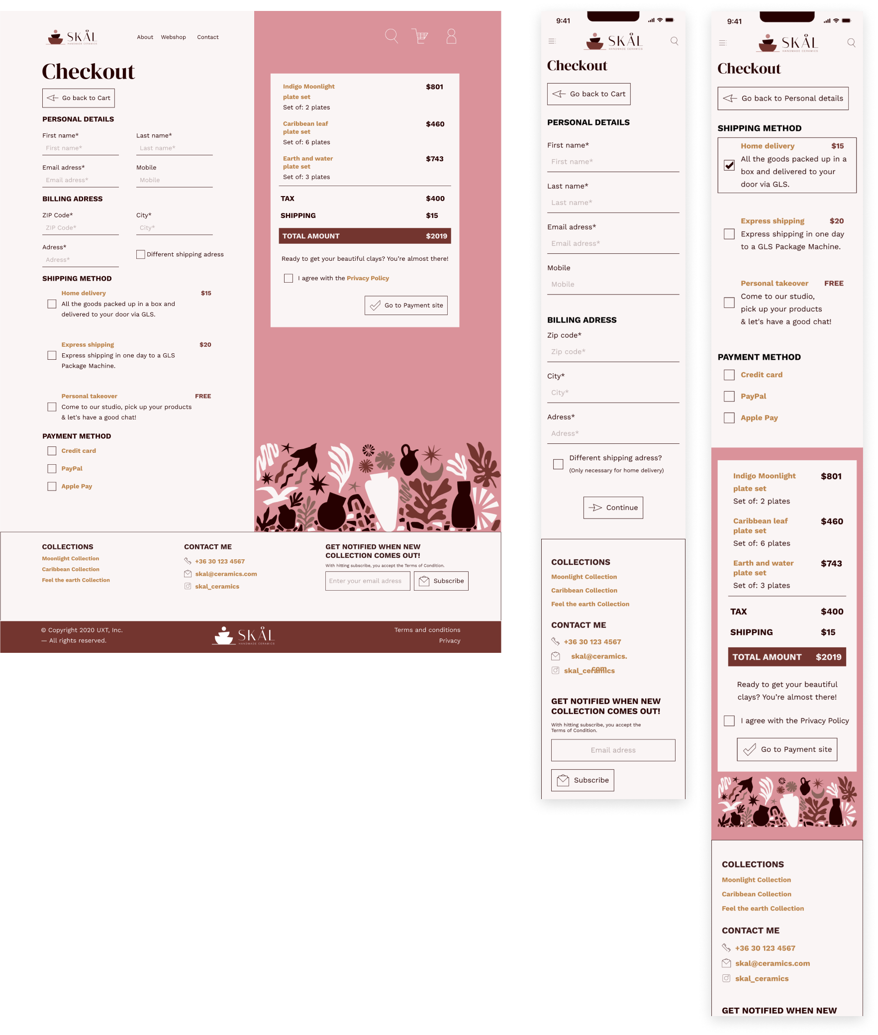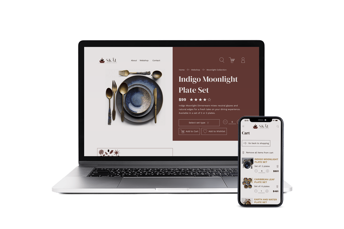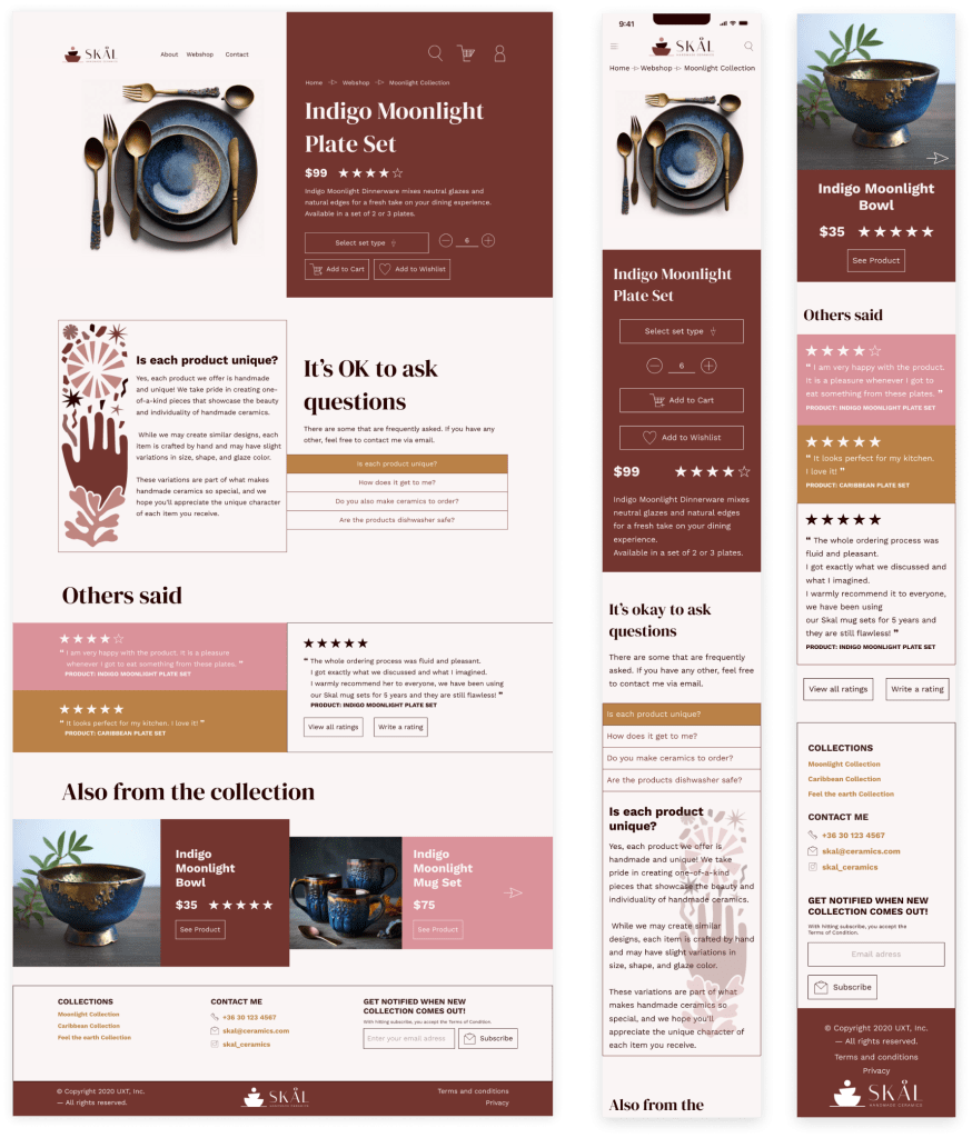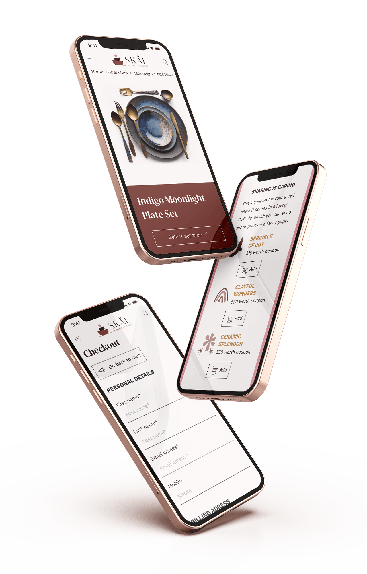 I envisioned a webshop for a craft ceramic business behind SKAL. The name "SKAL" is derived from the Swedish word meaning "cheers" or "to your health."