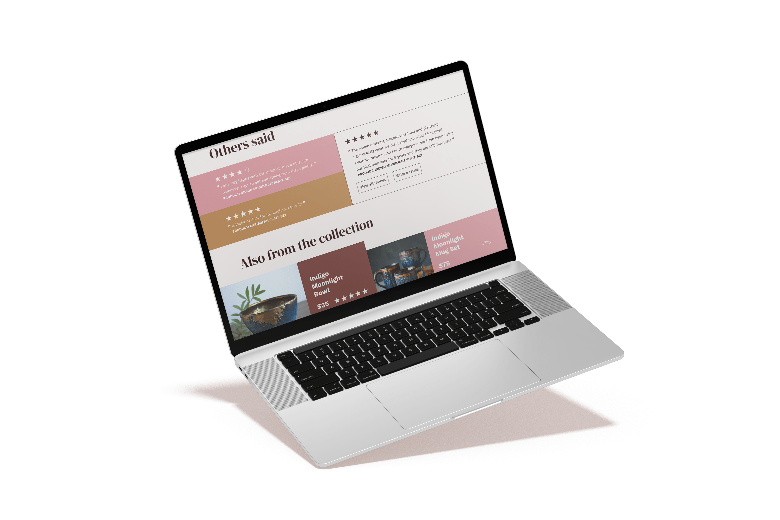 Three pages were developed: the product page, the cart page, and the checkout page. I aimed for an elegant and understated style, with occasional more informal sentences to add a touch of spice.